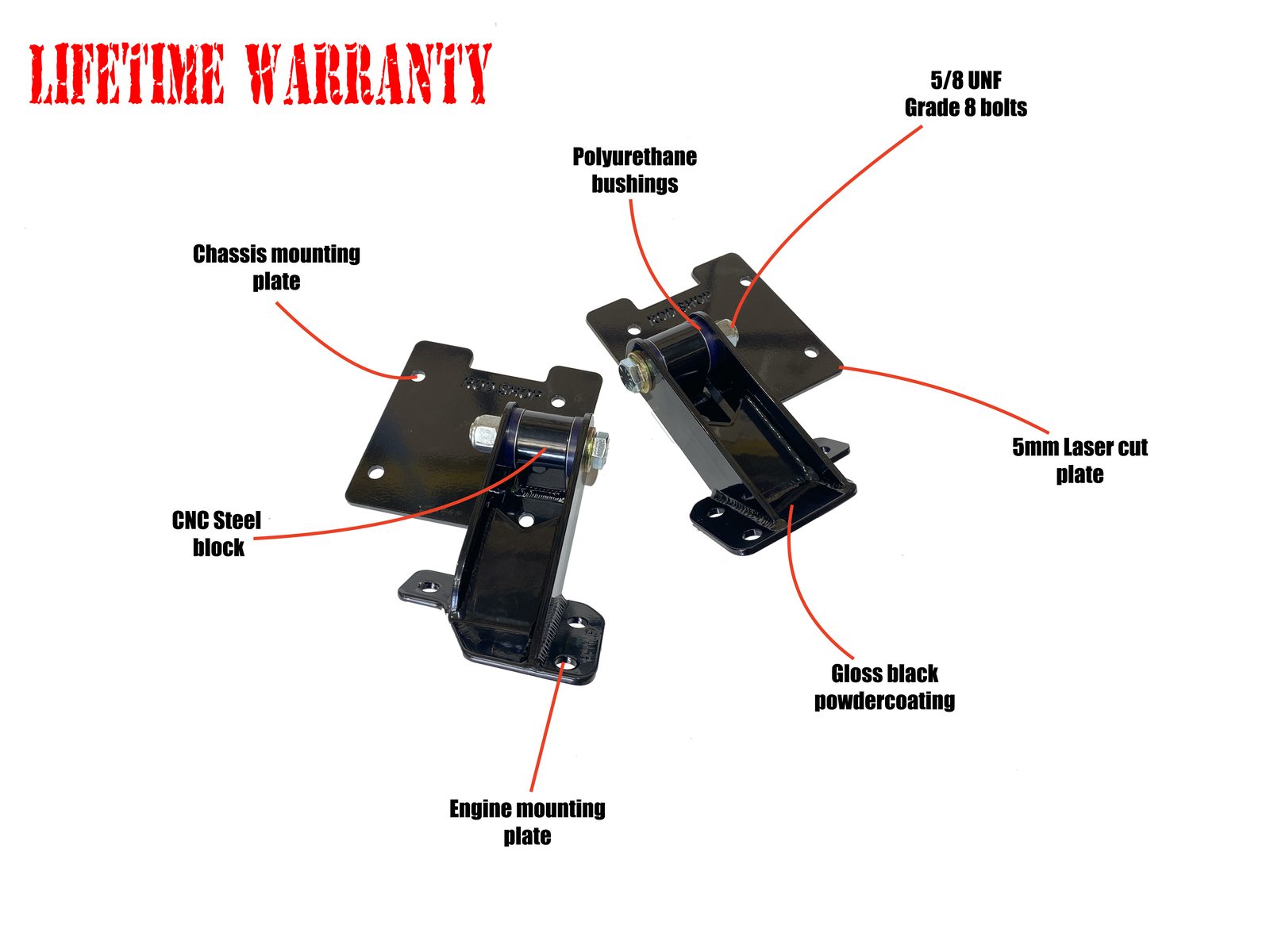 Heavy Duty Engine Mounts for Nissan SR20 Engines into Holden Geminis