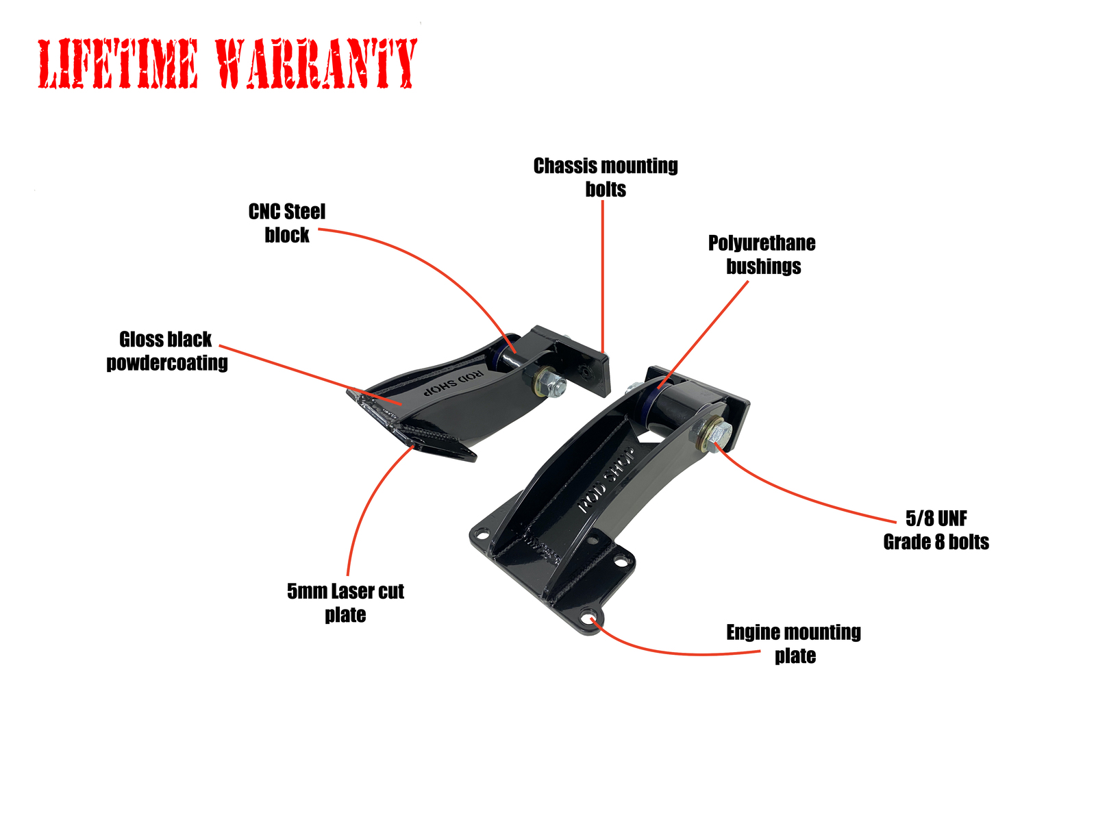 Engine Mounts (Heavy Duty) for Toyota V8 1UZ, 2UZ & 3UZ Engines into WB Holdens
