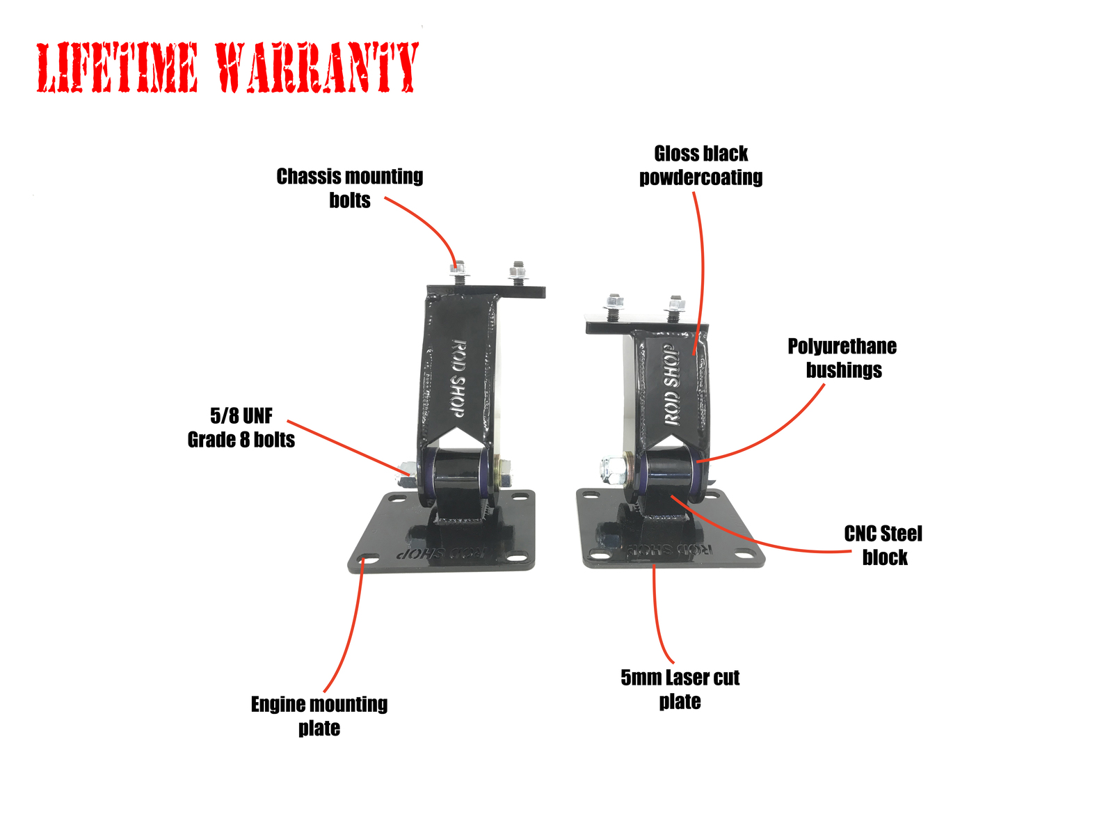 These Engine Mounts are for LS1, LS2, LS3, LSA & LSX Engines into VB, VC, VH, VK, VL, VN, VP, VR & VS Holdens