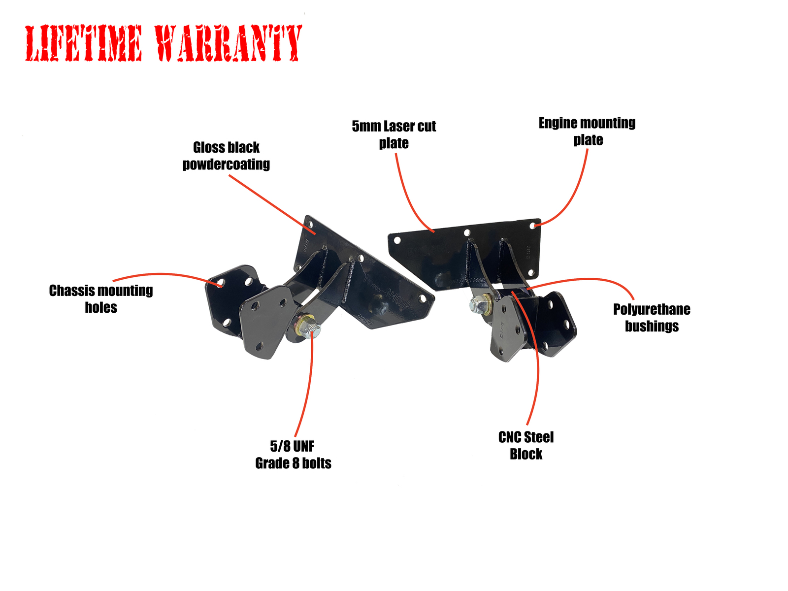 Heavy Duty Engine Mounts for Nissan SR20 Engines into Holden Geminis