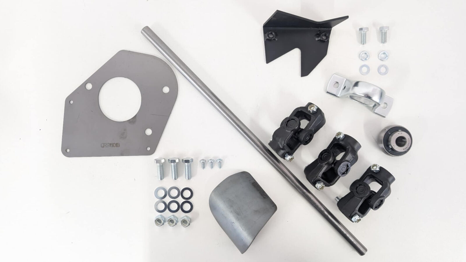 A special bracket and bearing support kit to allow 3 steering universals needs to be used, the Drivers side engine mount will need a small section cut from it to allow the weld on bracket to fit.