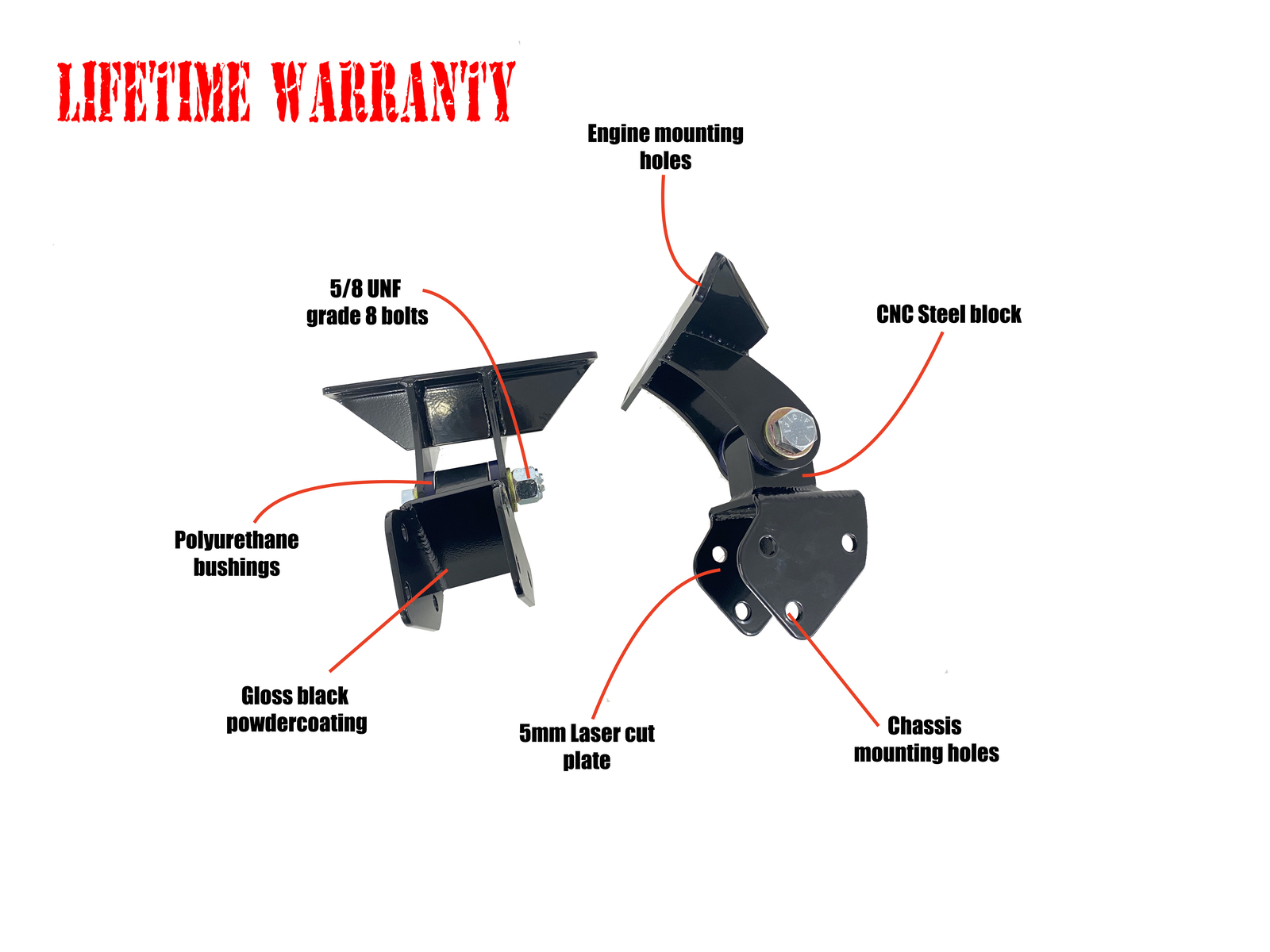 Engine Mounts (Heavy Duty) for LS1, LS2, LS3, LSA & LSX Engines into LH, LX & UC Holden Toranas